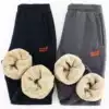 Lambskin pants Men's winter velvet thickened warm loose casual cotton pants middle-aged dad sports thick cotton pants