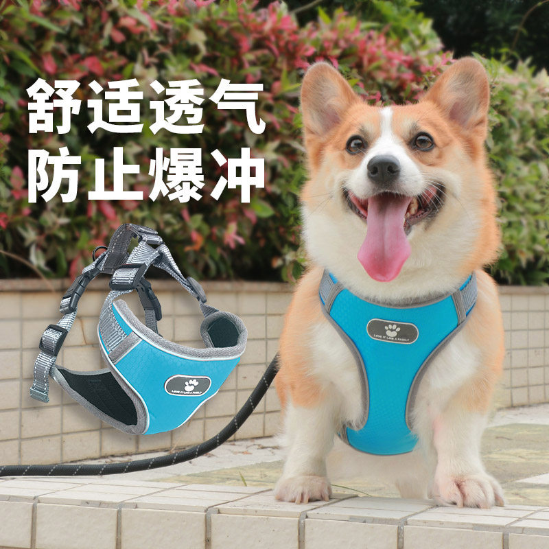 Dog chest strap traction rope adjustable vest-style dog rope going out small dog explosion-proof rush pet supplies corgi