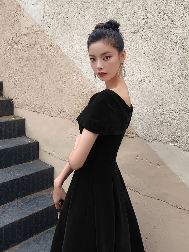 Black Conspicuble Evening Dress Dress Woman Big Yard with Shoulder Long Style Banquet Temperament High-end Annual Meeting Gown small child autumn-Taobao