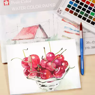 Sakura solid watercolor pigment 24 colors 36 colors 48 color art professional solid watercolor paint set beginner students with hand painted paintbrush watercolor tool Japanese cherry blossom brand Pearl gouache