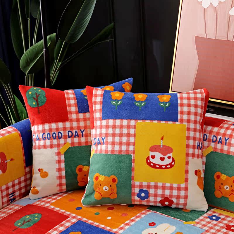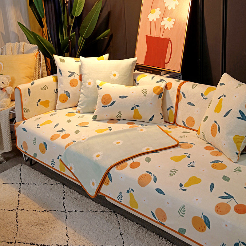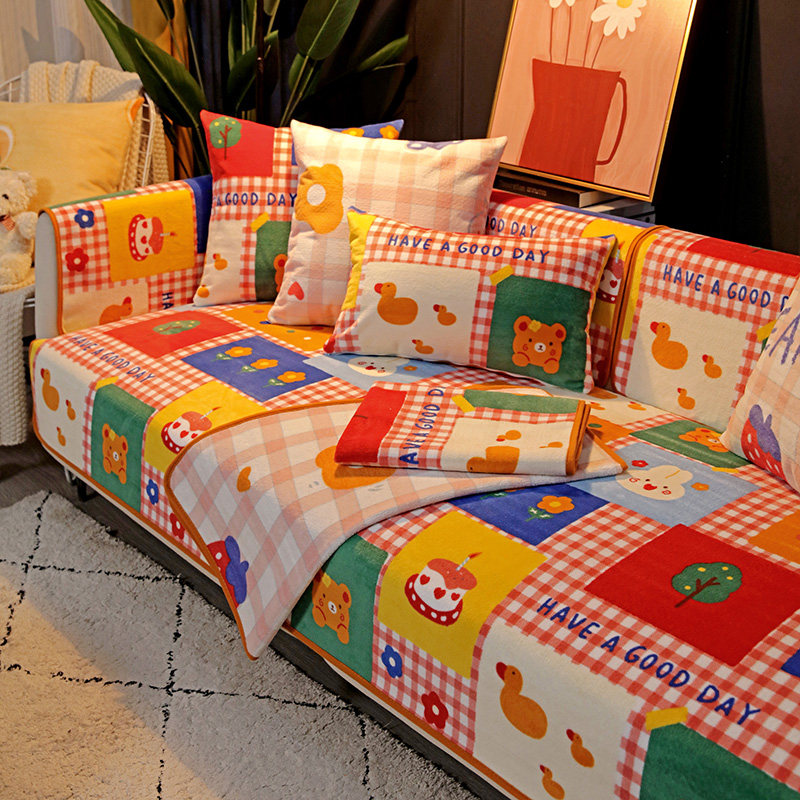 Winter milk suede sofa cushion Nordic minimalist Cartoon Pattern Short Plush Anti Slip Thickened Fabric Sofa Cover Scarves