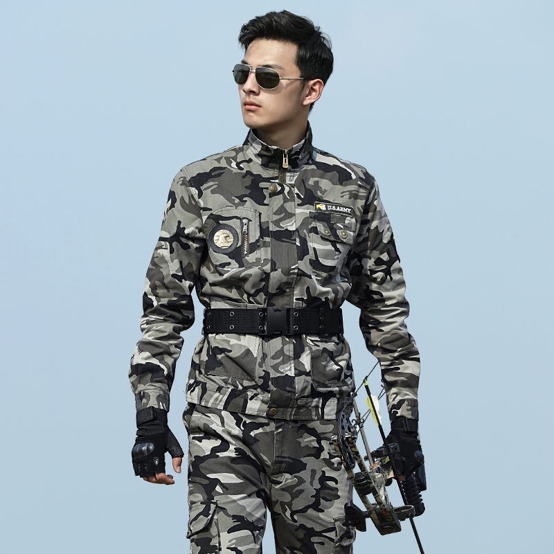 Pure Cotton Black White Grey Army Fan Camouflay Suit Men's Special Soldiers Combat Training Wear and Labor Wear Resistant Labor Work Clothes Autumn