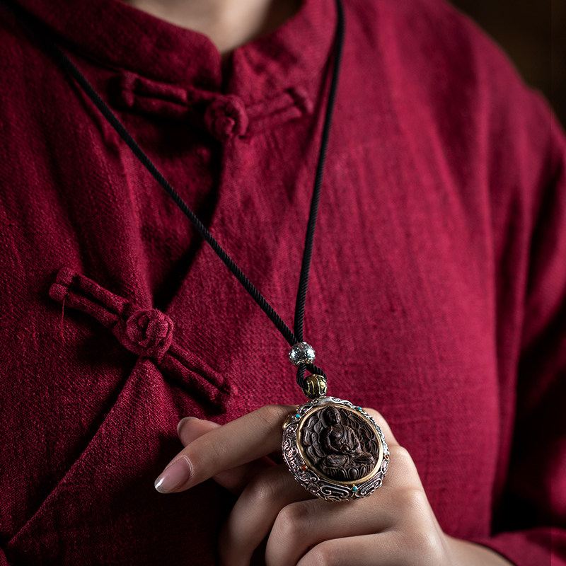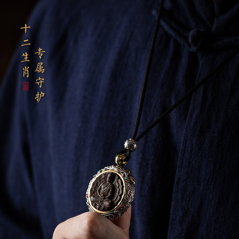 Dashan Hall sterling silver inlaid with agarwood eight zodiac signs Buddha pendant male and female void hidden bodhisattva genus tiger necklace