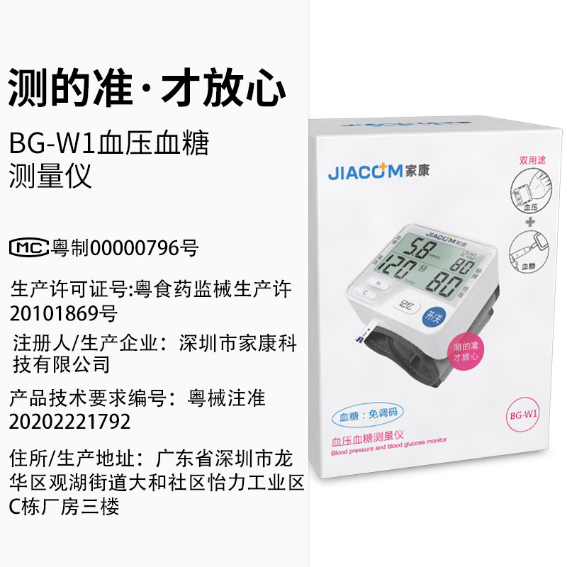 Measuring instrument for blood pressure blood glucose
