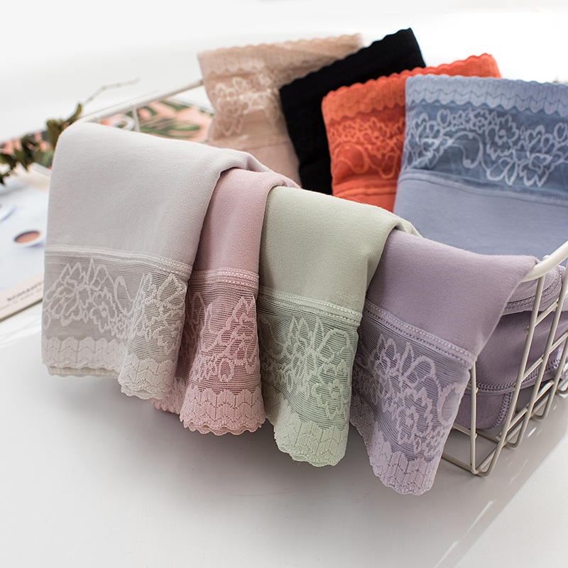 Aidi Weisha's new comfortable breathable lace mid-waist women's panties sexy briefs seamless cotton crotch shorts