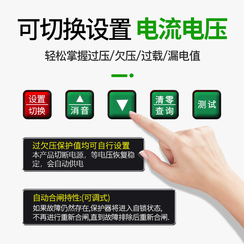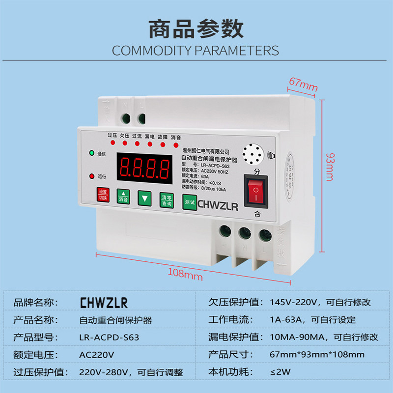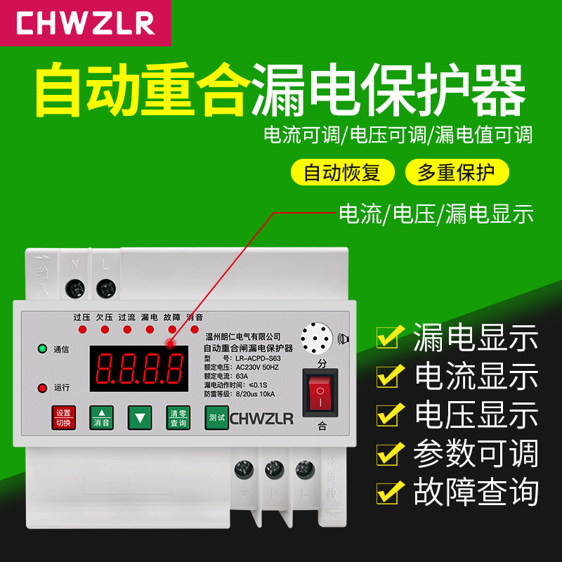 220V Home Earth Leakage Protector Automatic Reclosing Breaker Over Pressure Undervoltage Limited Flow Lightning switch single-phase-Taobao