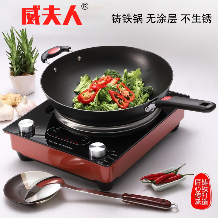 Convee electromagnetic oven special boiler old-fashioned iron boiler round coating cast iron boiler coating gas cooker for household fried cooker