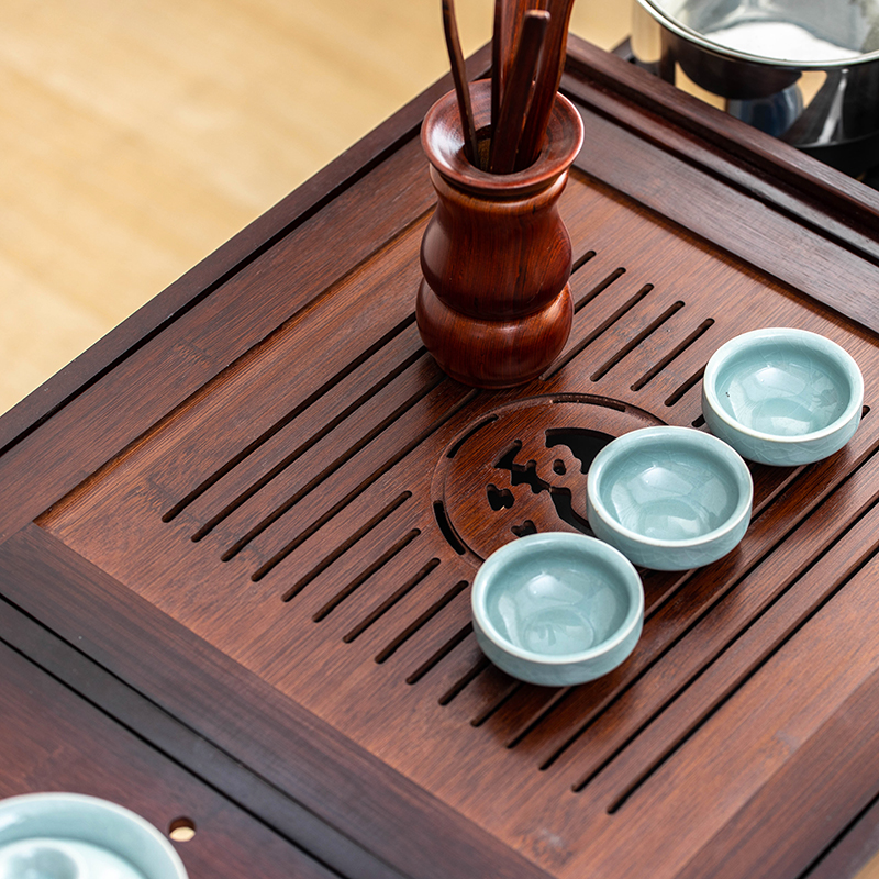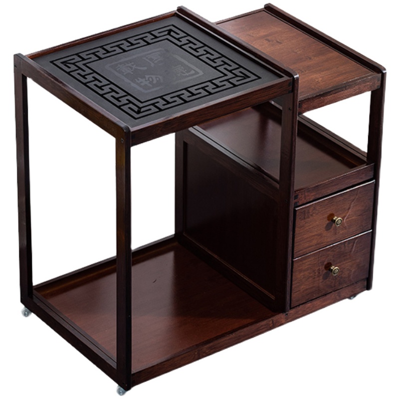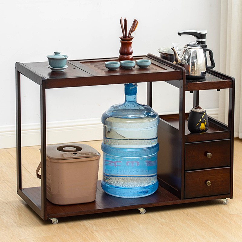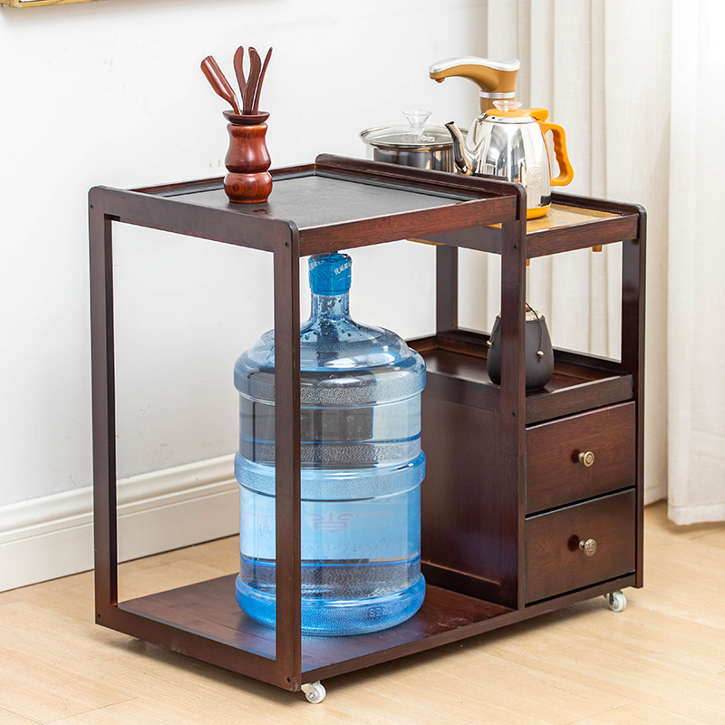 Rosewood color double drawer tea cart Rosewood color double drawer tea cart Cover plate rosewood color double drawer tea cart Black automatic appliance rosewood double drawer tea cart Gold automatic appliance red sandalwood double drawer porcelain stone tea cart rosewood double drawer porcelain stone tea