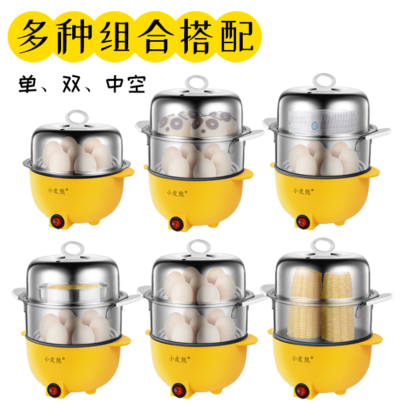 Double Layer Cooking Egg 304 Stainless Steel Steam Egg automatic power off Home cooking pan Mini breakfast machine frying egg pan