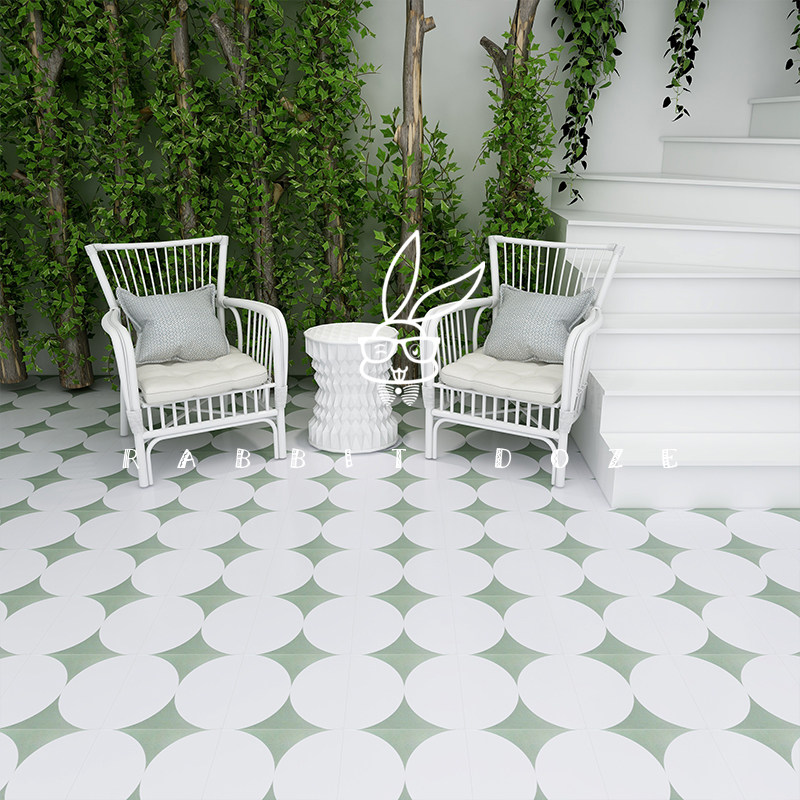 Retro green hotel bed and breakfast personalized small tiles Mediterranean style restaurant ins wind non-slip tiles 300*300