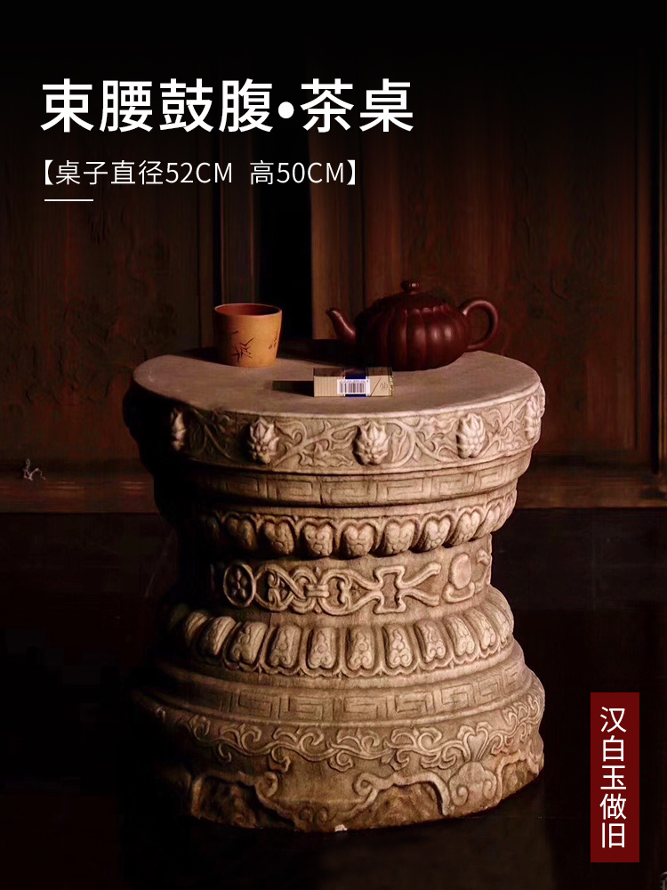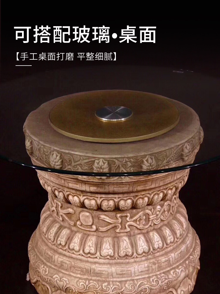 Stone carving tea table Han Baiyu old courtyard indoor stone table viewing stone seat finely carved stone Xumi seat large flower table tea table