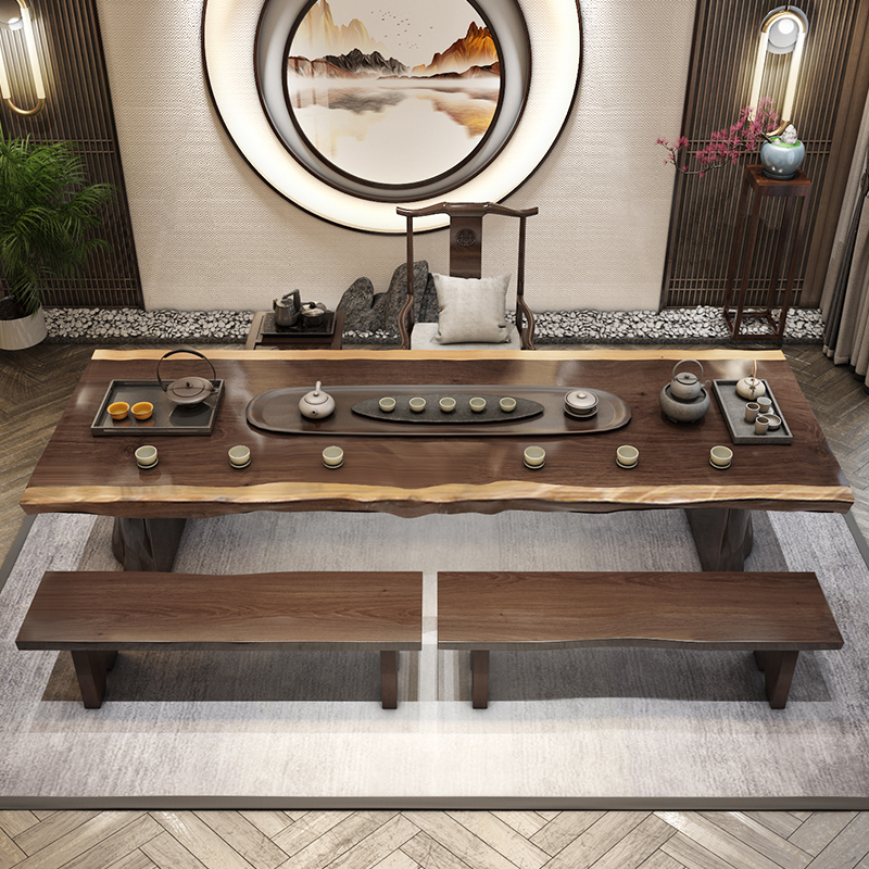 Tea table and chair combination solid wood large board log drinking tea art kung fu tea table new Chinese tea making table simple modern living room