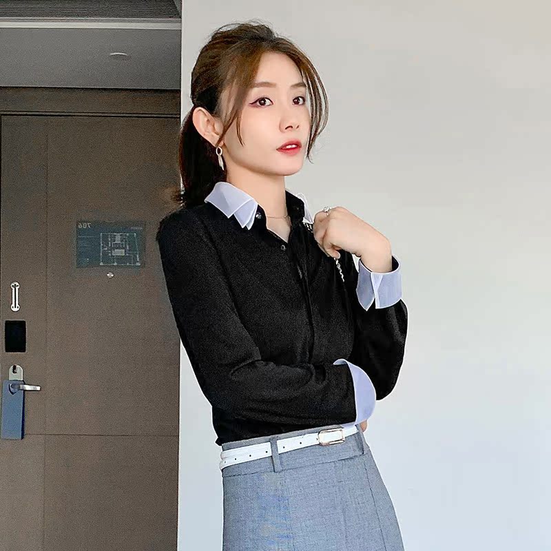 High-quality top women's simple spring and autumn new self-cultivation small work clothes professional shirt black bottoming shirt tide