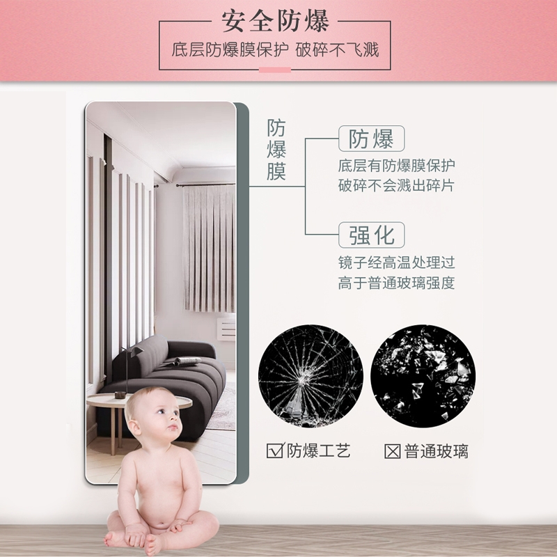 Custom Large Mirror Sticker Wall Self-Glued Full Body Mirror Wall-mounted Adhesive Hanging Wall Body Mirror Student Dorm Room Home Full Body Mirror