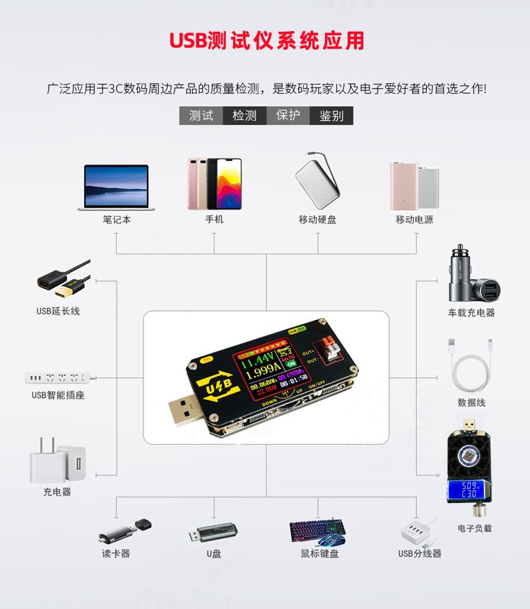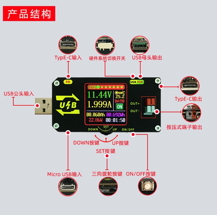 USB colour screen charging tester numerical control lifting piezoelectric source PD detection lured Type-C voltage current table