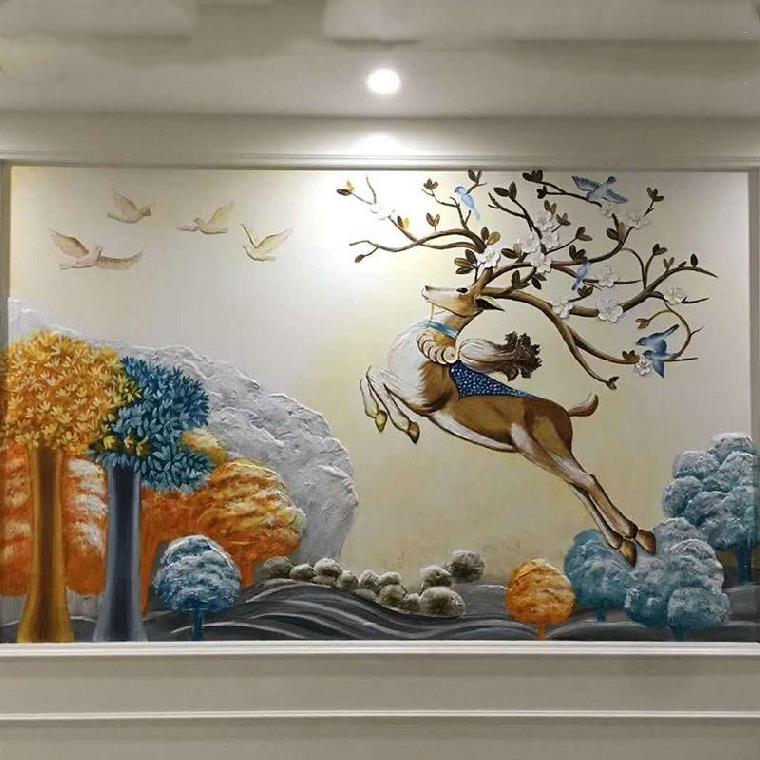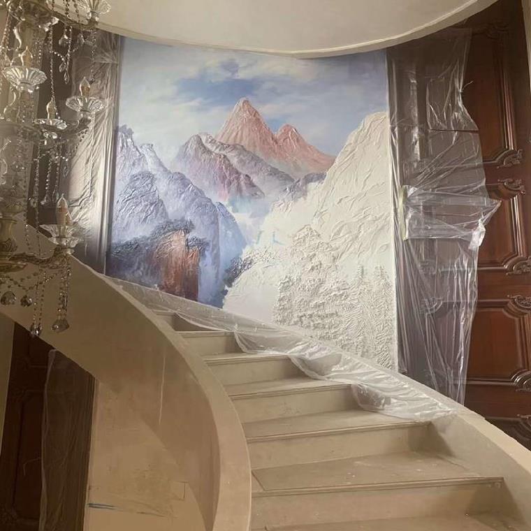The relief wall made hand decorated minerals of sculpture materials for fine sand wall painted plaster wall