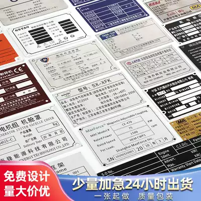 Equipment sign metal nameplate custom-made aluminum plate printing bronze medal corrosion brushed stainless steel motor panel