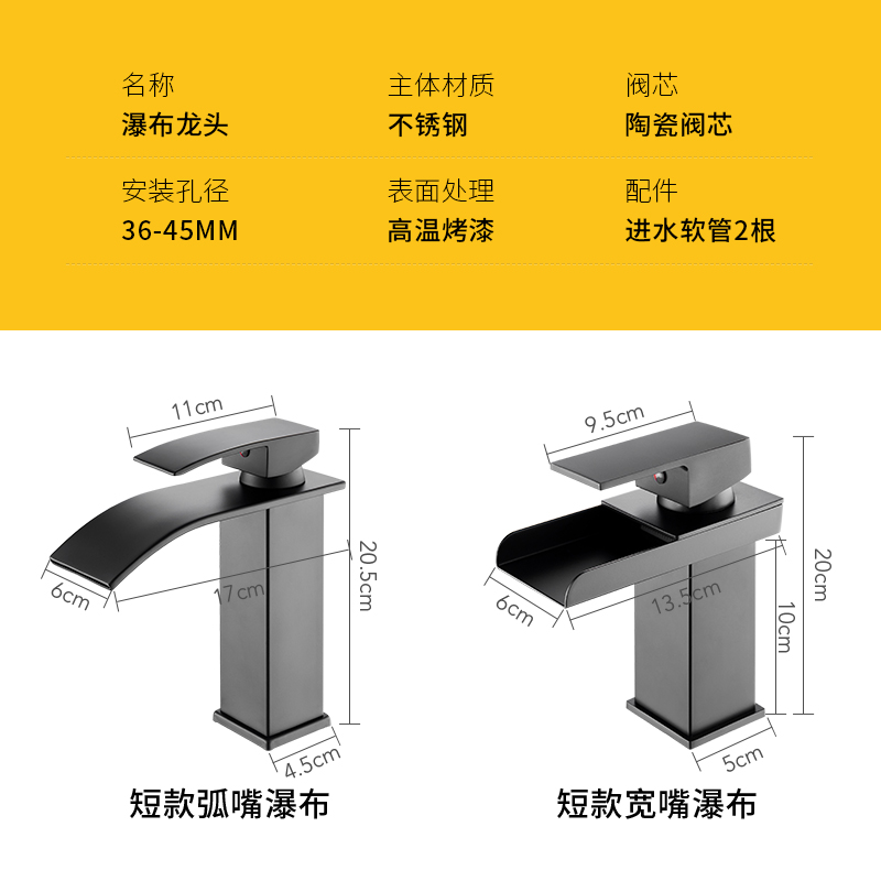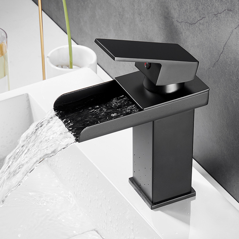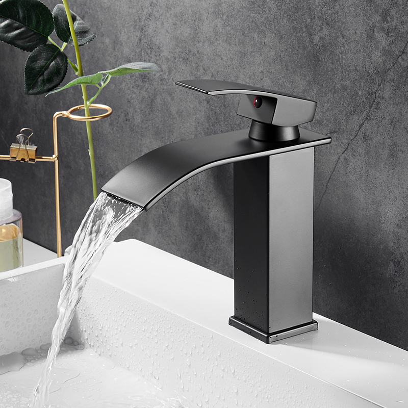 Nordic black paint waterfall faucet hot and cold countertop basin washbasin powder room bathroom cabinet single hole faucet