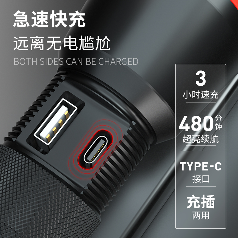 LED strong light flashlight rechargeable ultra-bright long-range outdoor small portable ultra-long battery life xenon lamp home mini