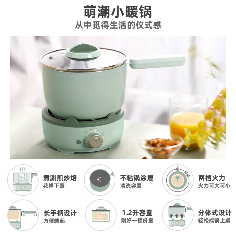 Small Bear Quick cooking pot multifunction Home Two-style student Dormitory Small electric hot hot pot cooking and frying electric pan 1 person 2
