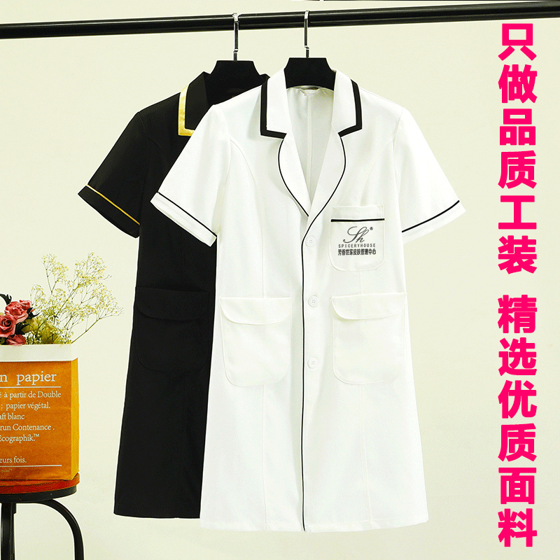 Beauty Salon Workwear Woman Short Sleeve High-end Autumn Winter Skin Management Division White Large Vest Man Middle Long Sleeve Tattoo Embroidered Beautician