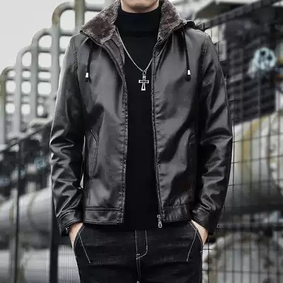 Leather men's leather spring and autumn trend slim cashmere motorcycle jacket thick black casual leather jacket
