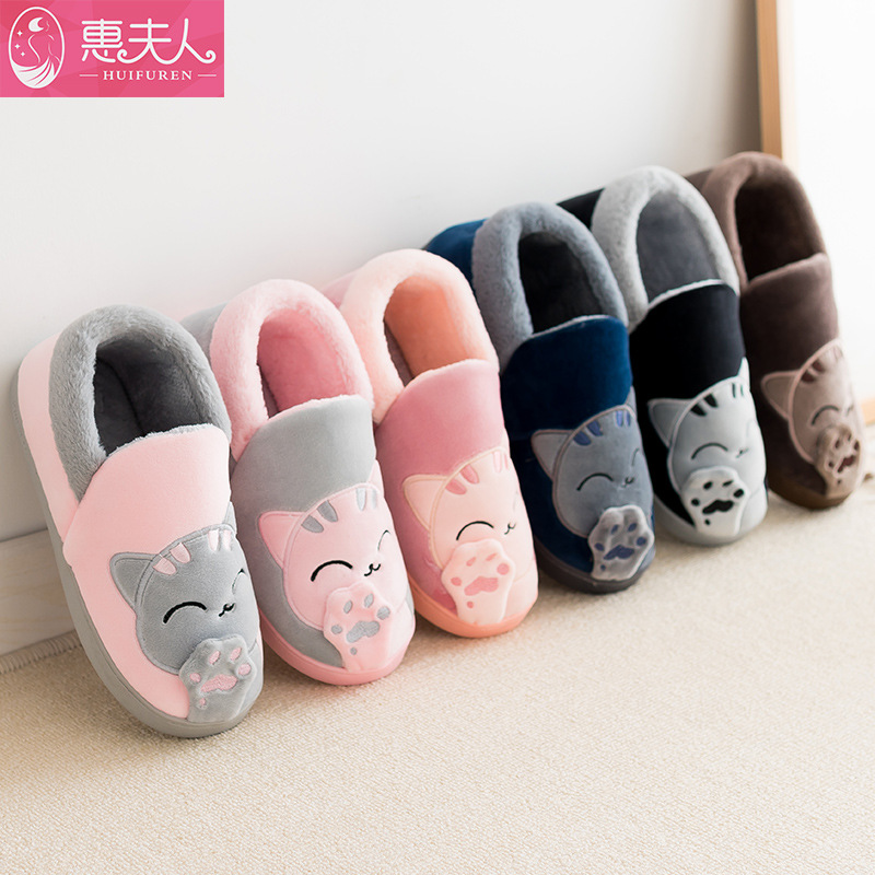 Confinement cotton slippers couple home winter bag with indoor cute warm autumn and winter non-slip men and women fur cotton shoes
