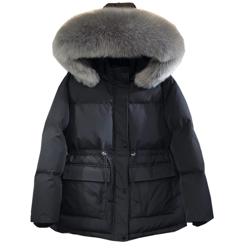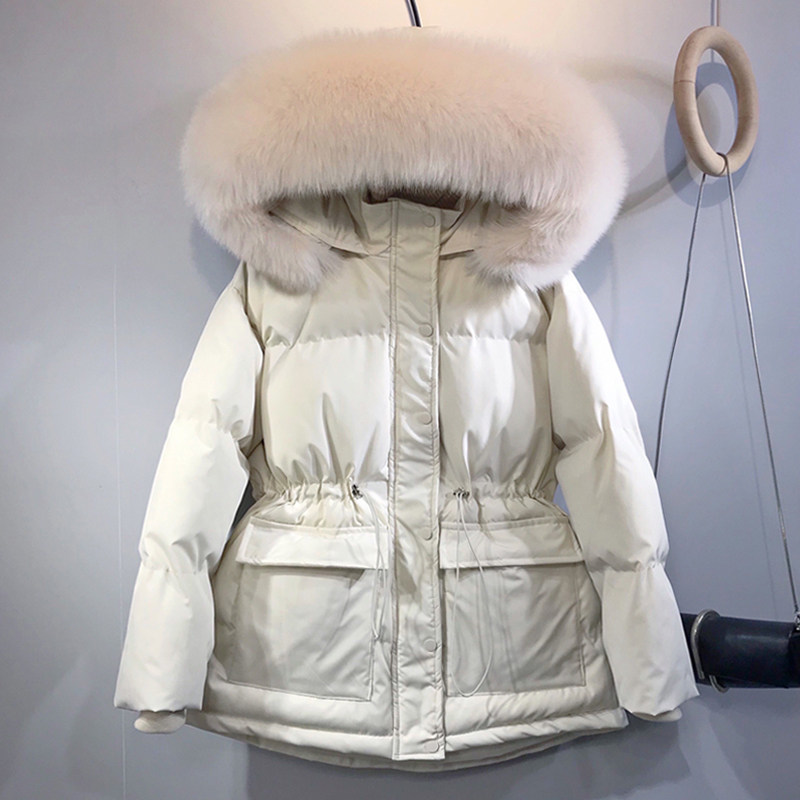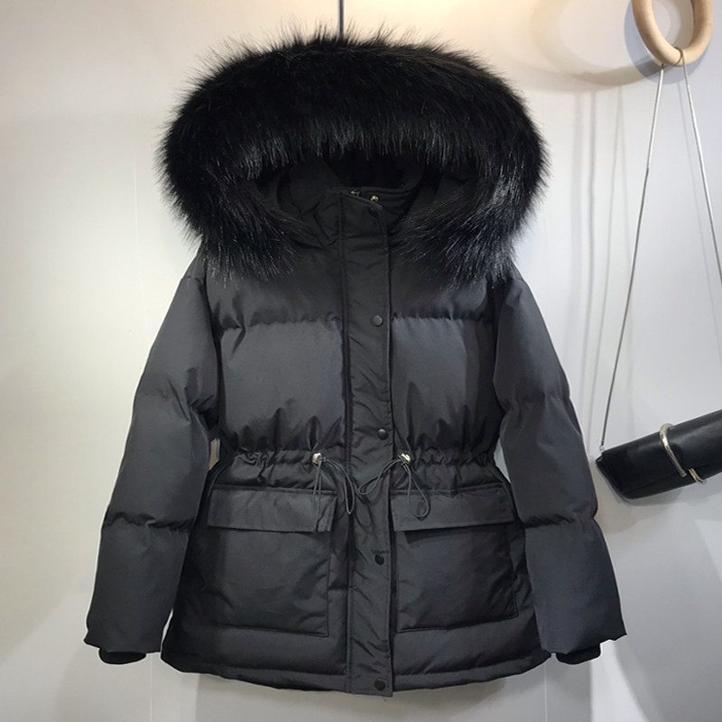 Mid-length cotton clothes women's 2021 winter new Korean version loose waist big fur collar thickened cotton clothes ins cotton jacket tide