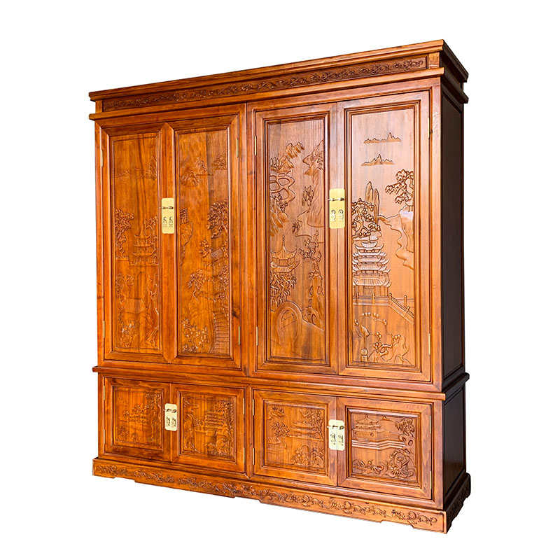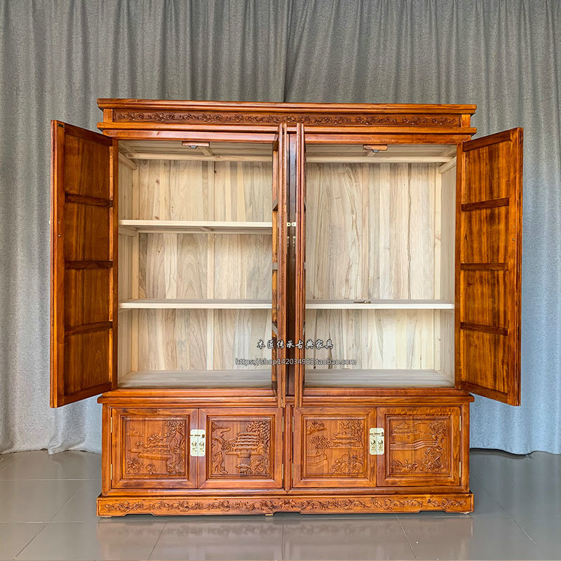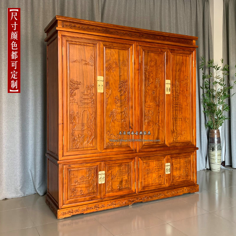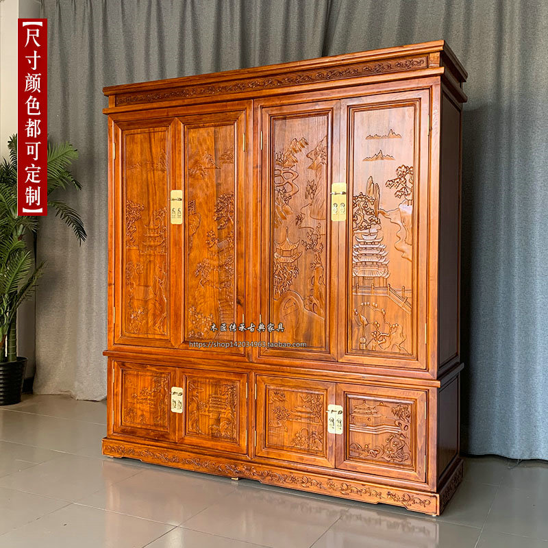 Chinese style all-fragrant camphor wood wardrobe four-door bedroom closet with large capacity containing cabinet Damp-proof and mildew-proof cabinet