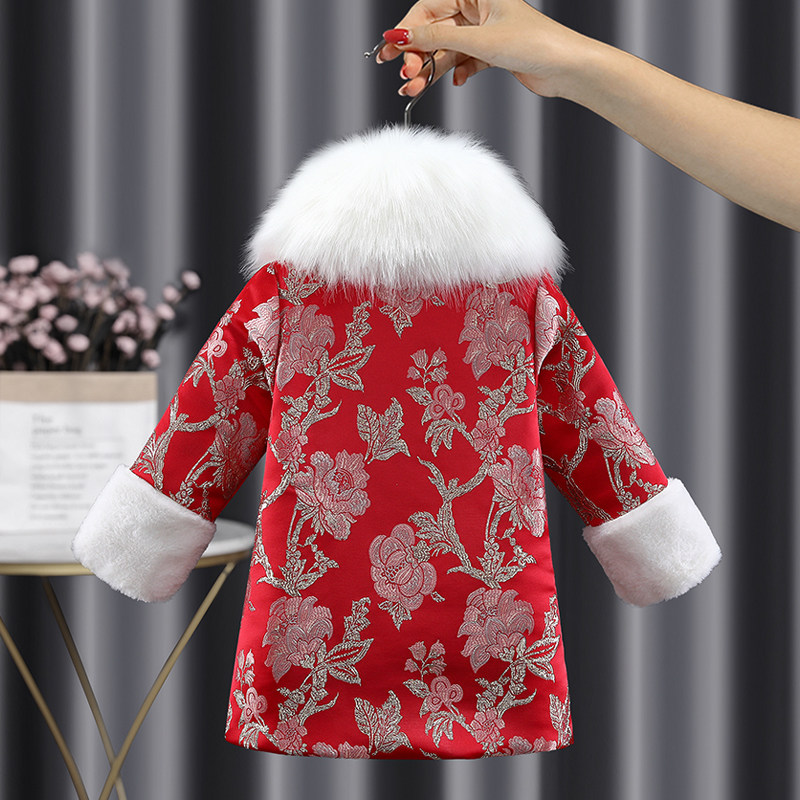 Girl's dress for the year 2022 new winter dress Children foreign dress Chinese wind dresses plus suede and don'ts dress cheongsam skirts