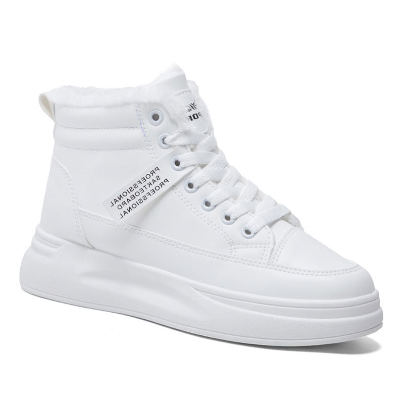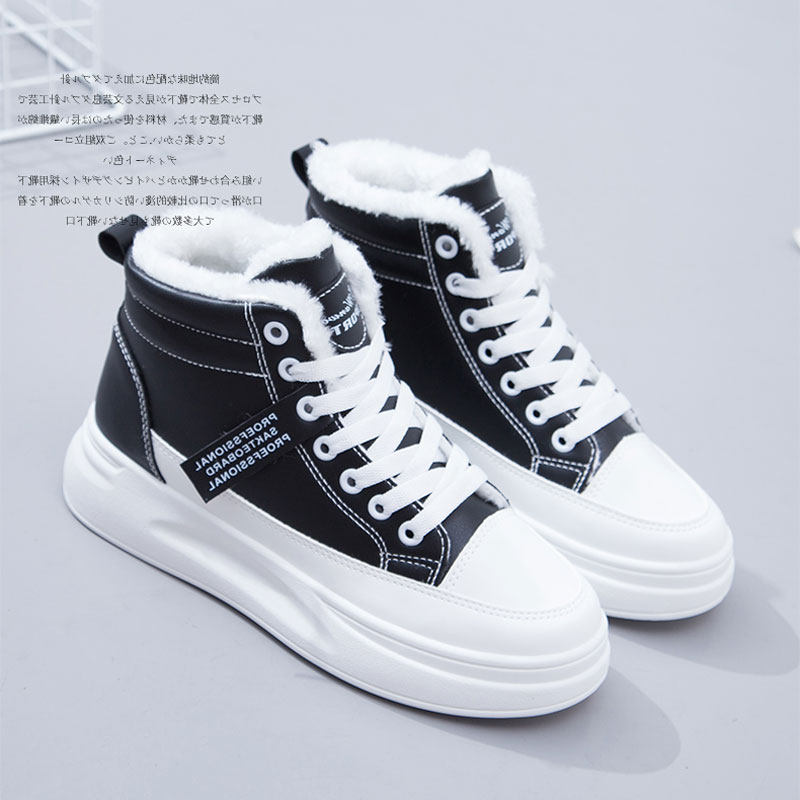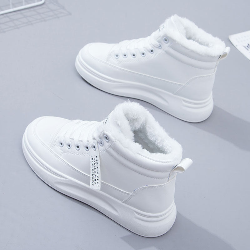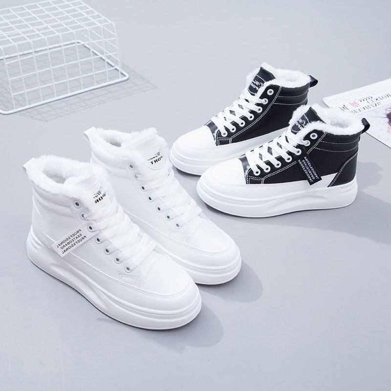Hong Kong Small White Shoes Women's Thick Bottom Heightening Cotton Shoes High Bunch Shoes Plus Suede Thickened Autumn Winter 100 Hitch Version Women's Shoes Snowy Boots