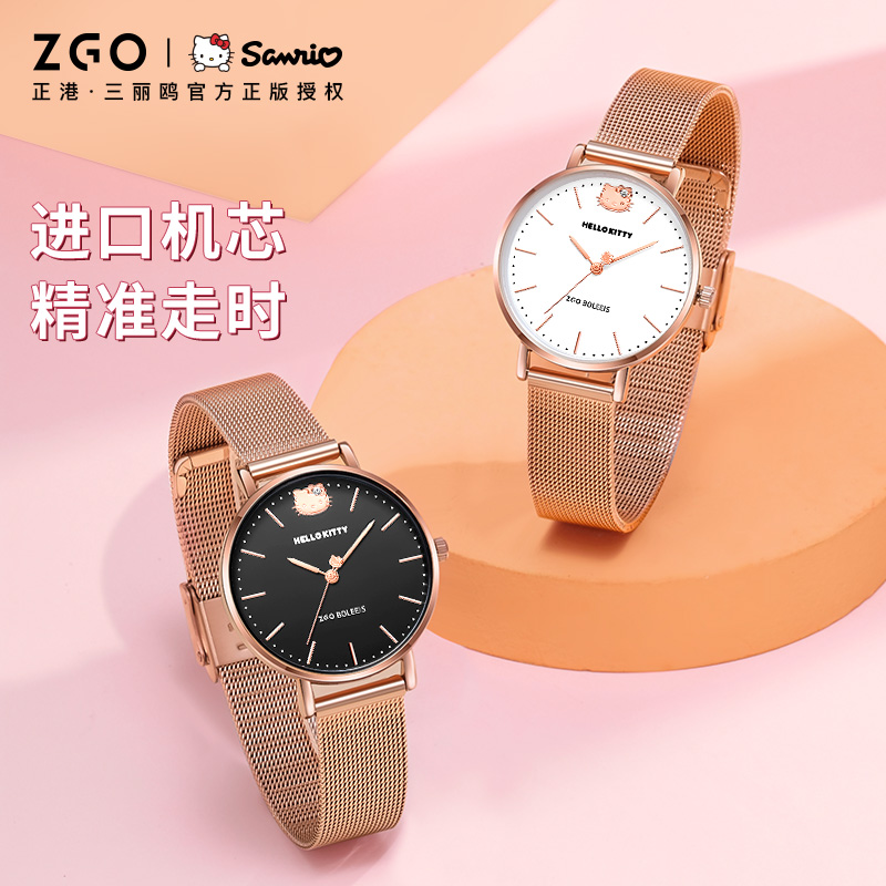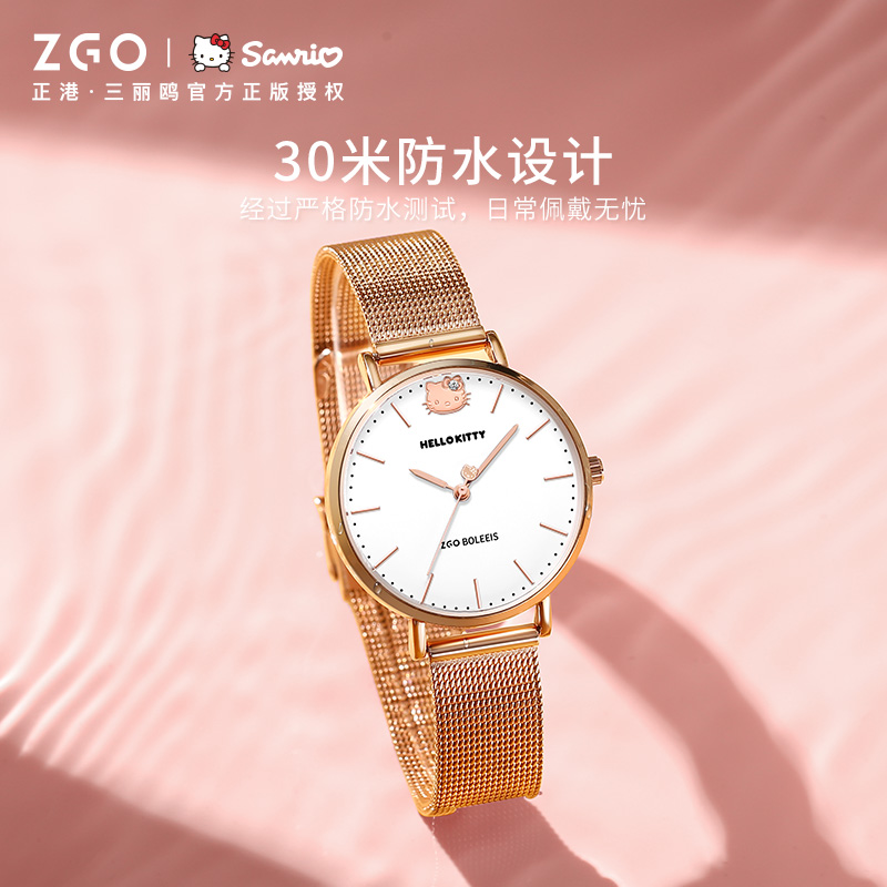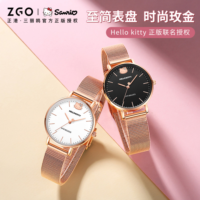 Zhenggang ZGOxHello watch female high school student ins wind light luxury simple temperament waterproof pointer quartz watch