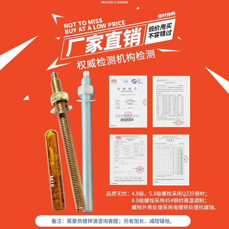 Chemical bolt high strength anchor expansion screw extension anchoring agent glue 10M12M14M16M20M24M30