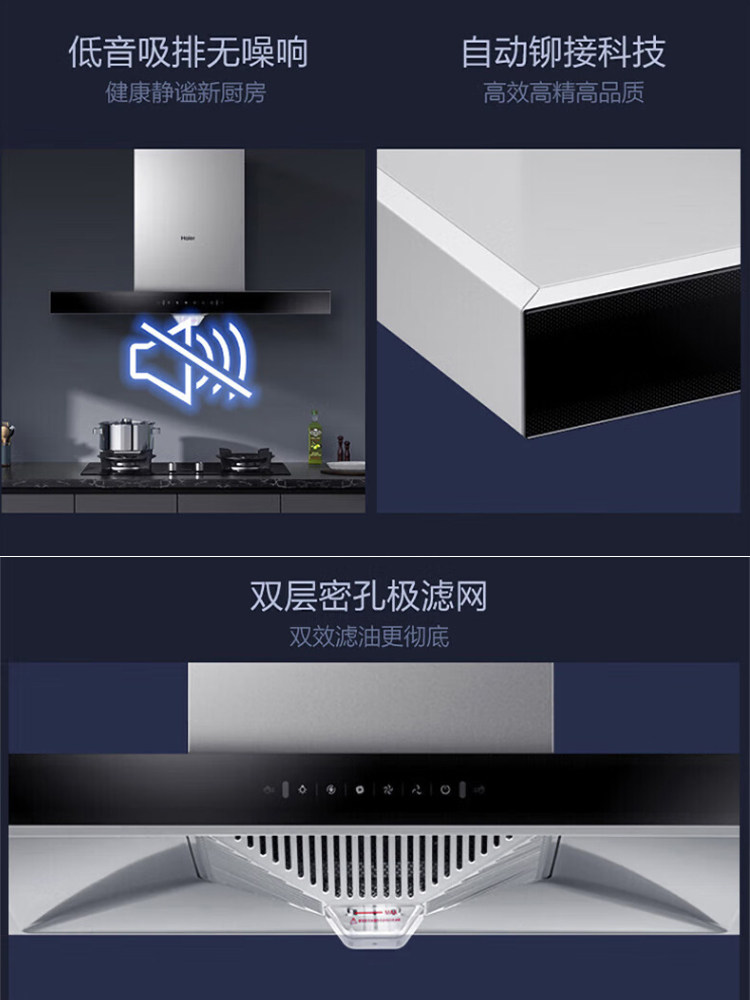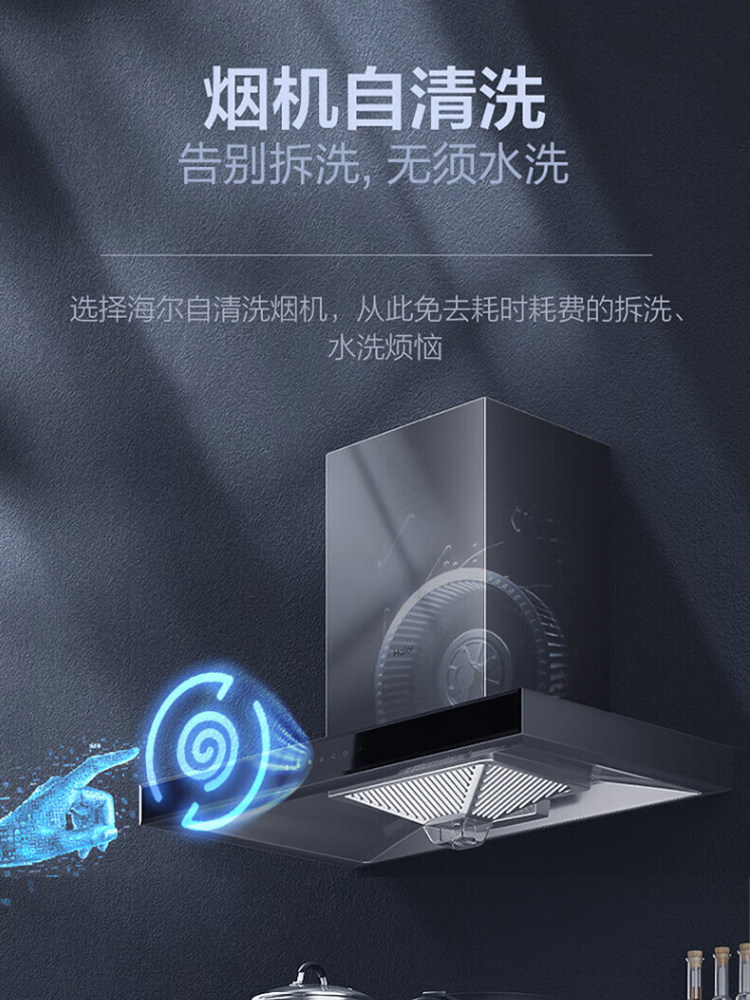 Haier (Haier) range hood 21 cubic large suction self-cleaning European-style flat wave control range hood