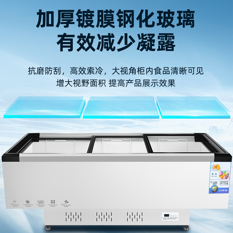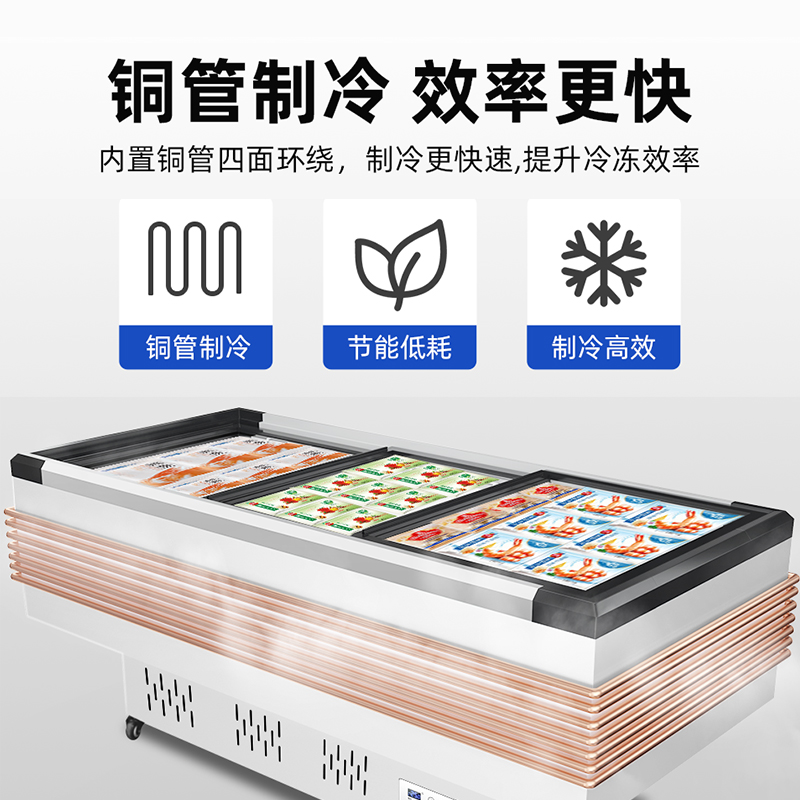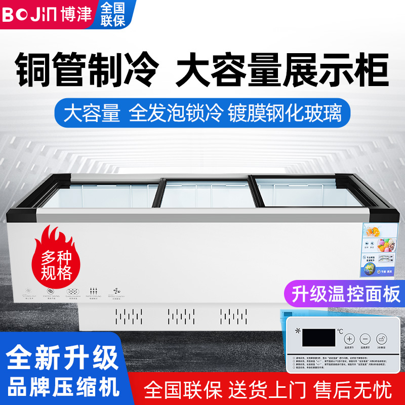 Bojin horizontal freezer supermarket fresh meat hot pot material frozen product freezer commercial island cabinet large-capacity seafood display cabinet