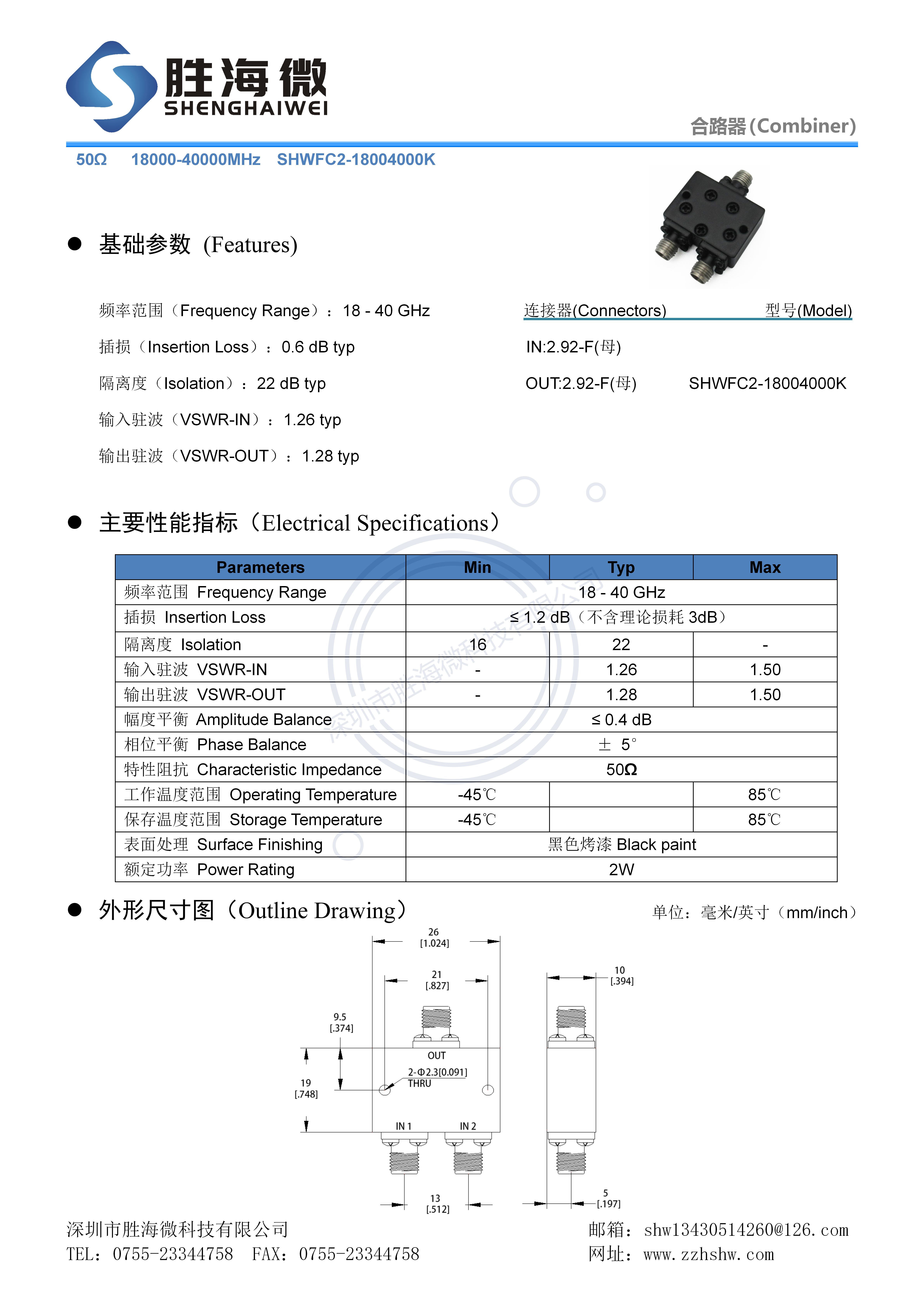 18000-40000MHz 18-40GHz 2 92mm 2W RF microwave coaxial two-in-one unit