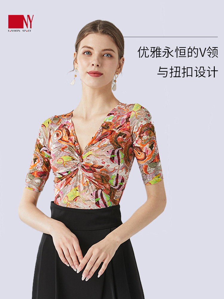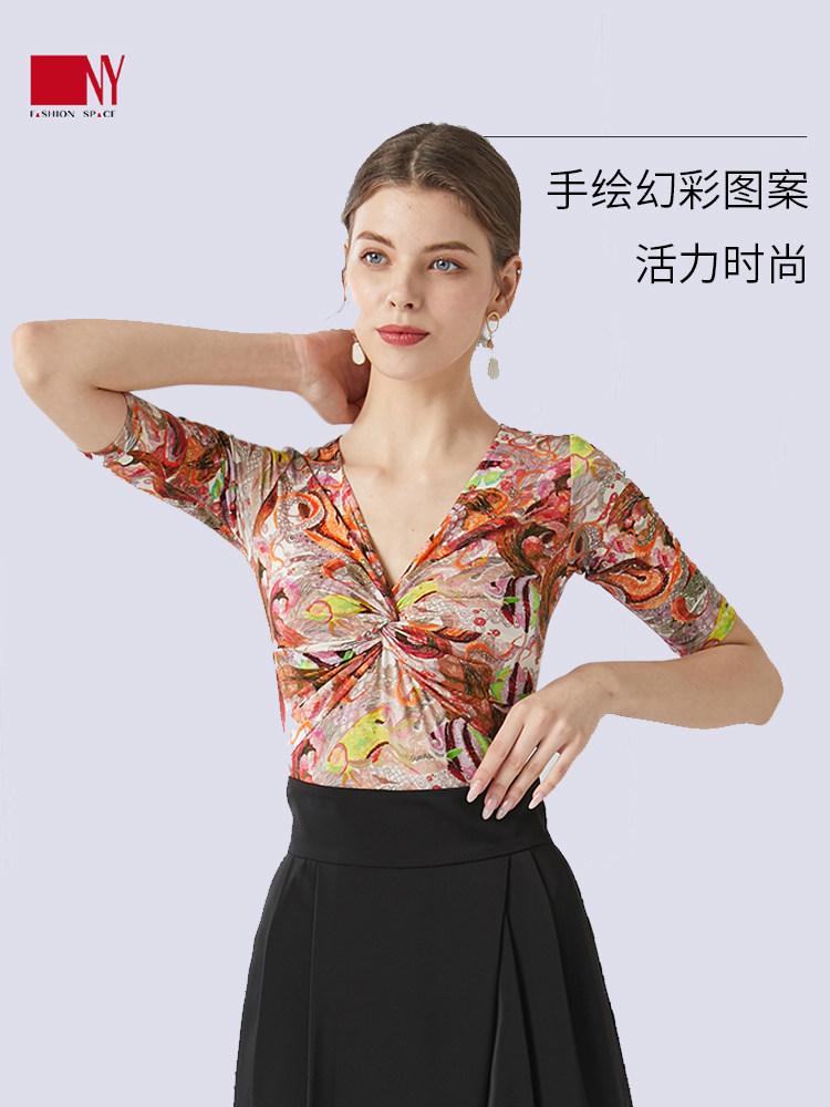 Nayi Latin dance suit women's blouse Moden dance suit V collar with a sexy new social dance practice
