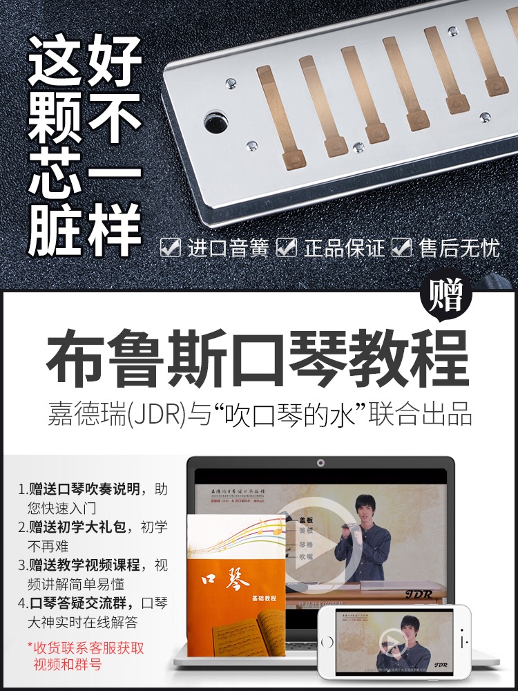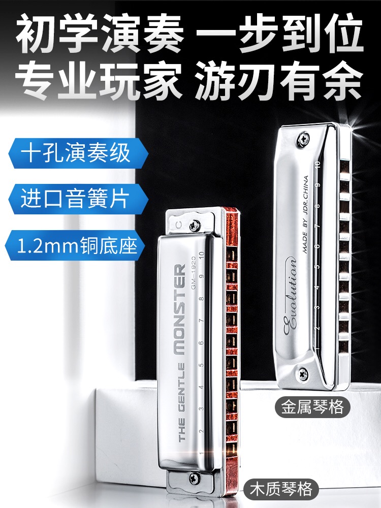 JDR professional playing-grade blues harmonica ten-hole wooden metal blues harmonica 10-hole adult imported tone reed