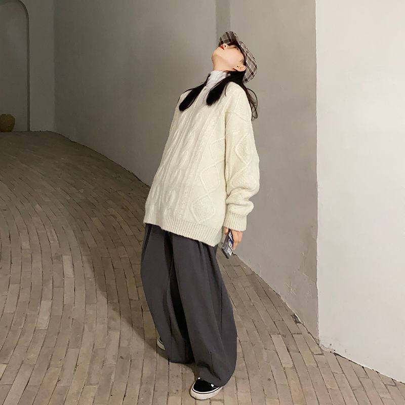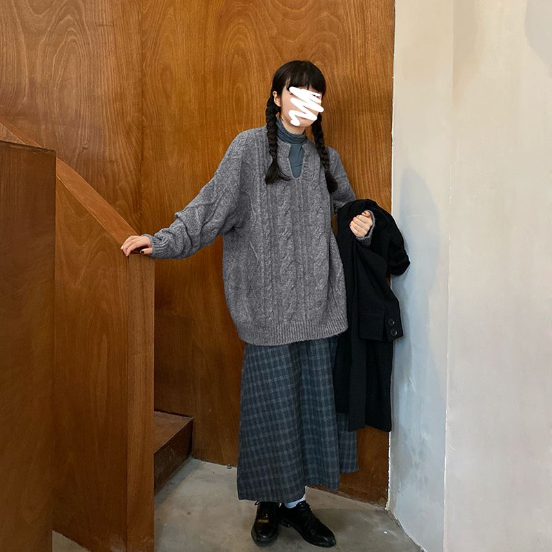 Sweater woman autumn and winter wear 2021 new Korean version V collar 100 lap loose Lazy Thickened Comeback Flower Knit Blouse