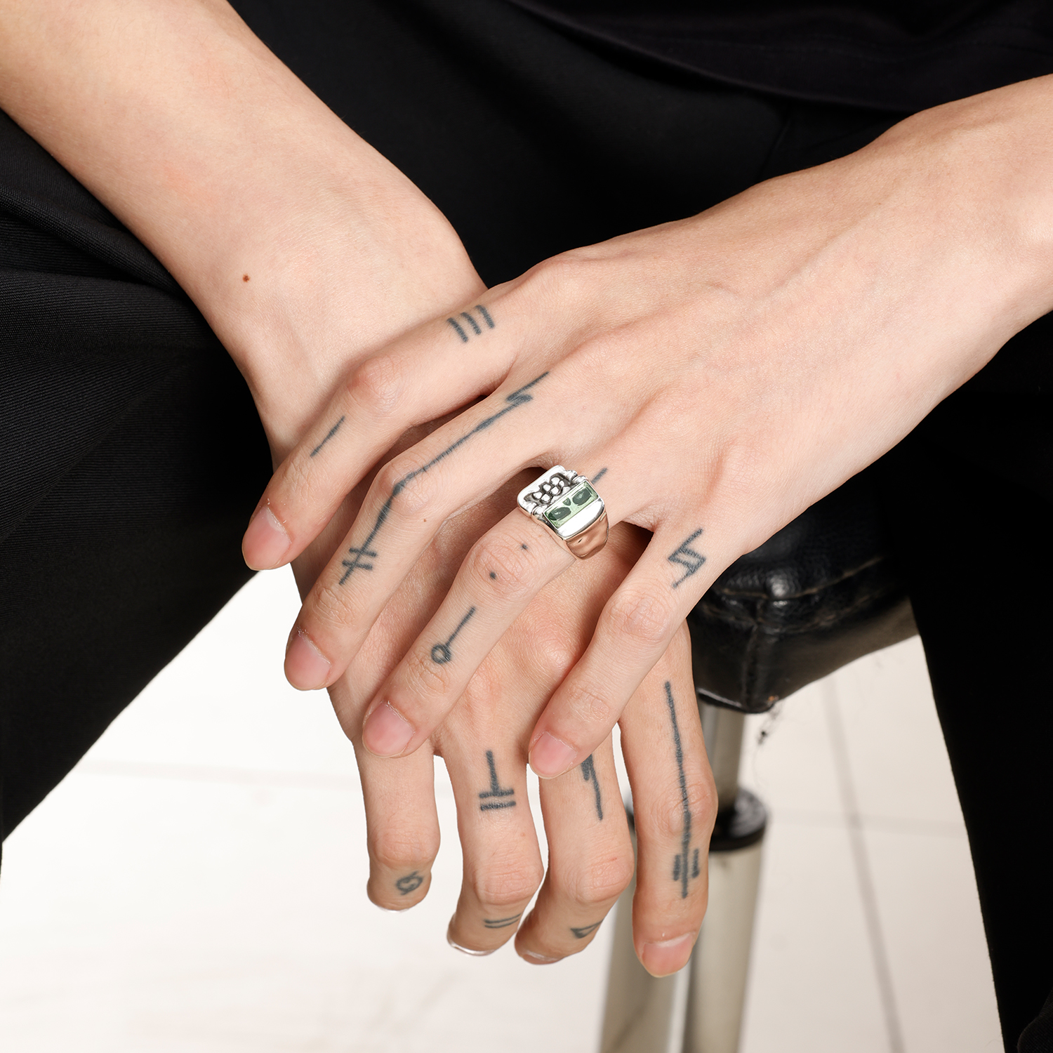 siderealmade x one-eyed dwarf joint skull glass gemstone ring 925 silver neutral silver jewelry