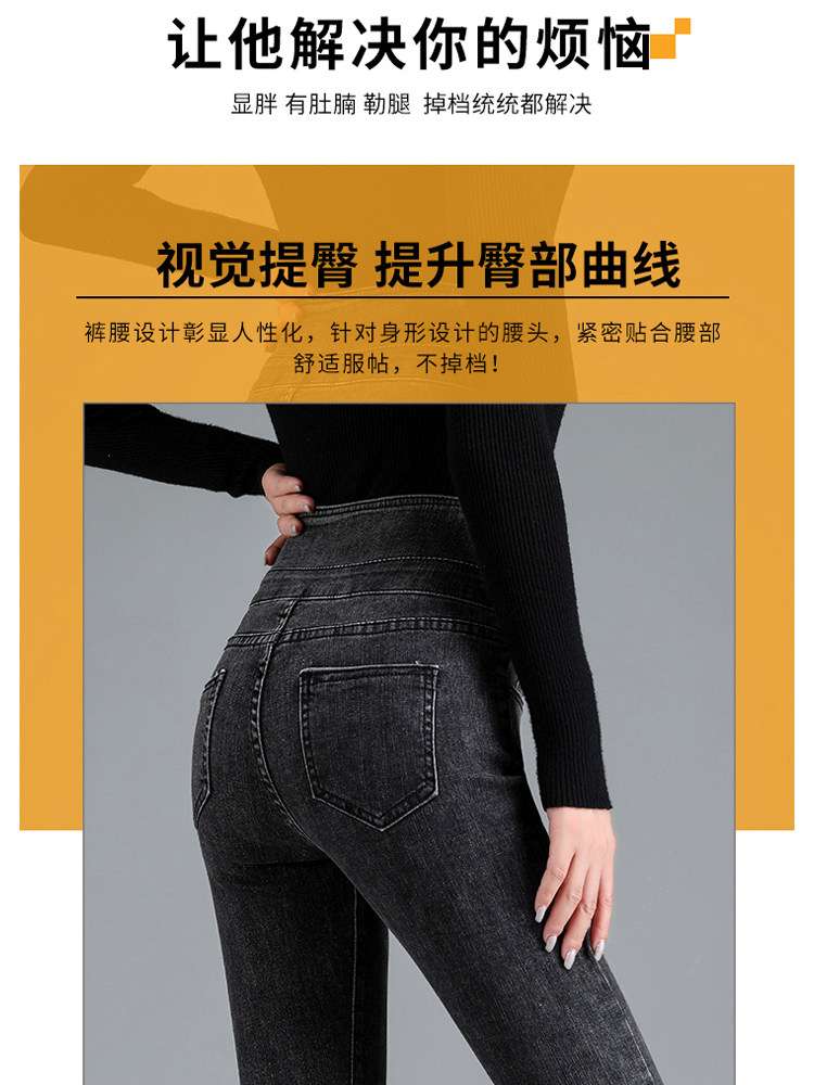Retro blue high waist trousers with small feet (plus velvet) Gray high waist trousers with small feet (plus velvet) Blue gray high waist trousers with small feet (plus velvet) Light blue high waist trousers with small feet (plus velvet) Retro blue high waist