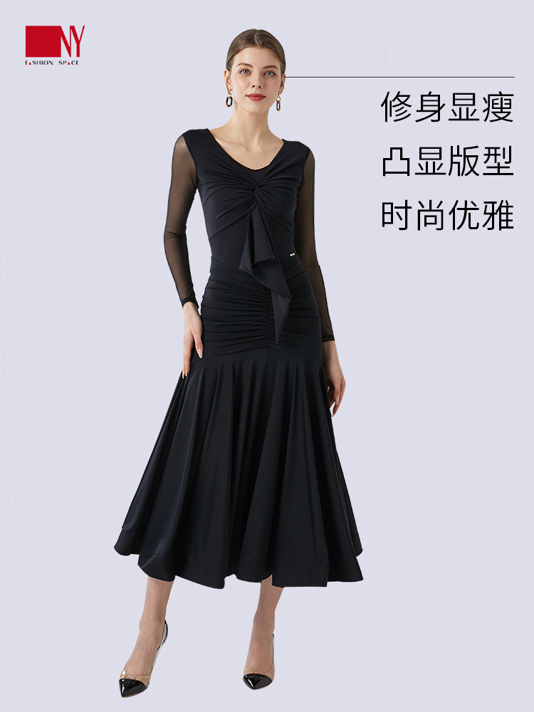 Nayi NY Latin skirt sexy new netsleeve Moden dance skirt fashionable lean V-lead professional competition skirt