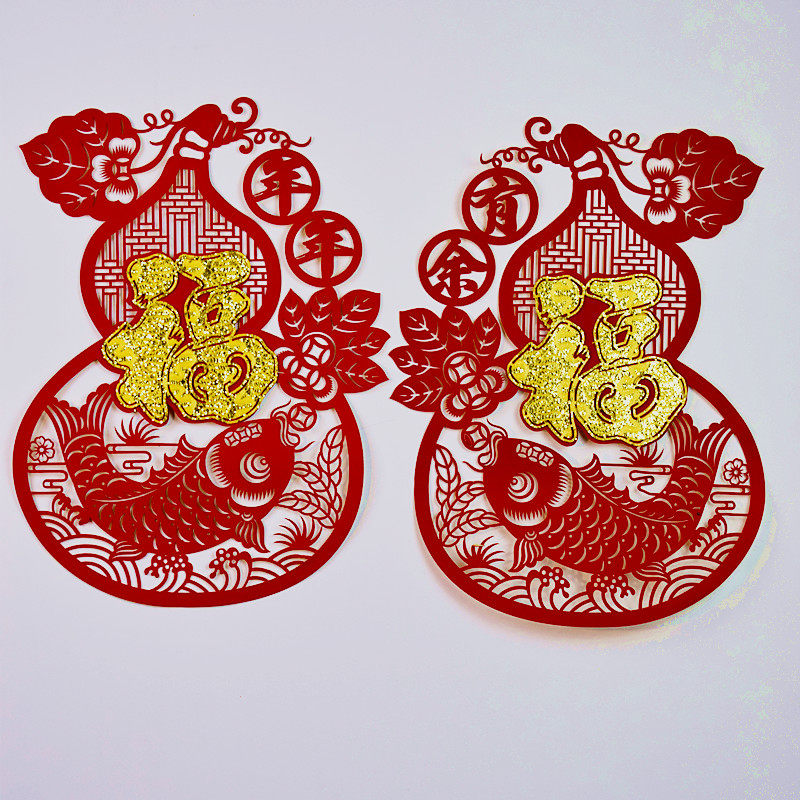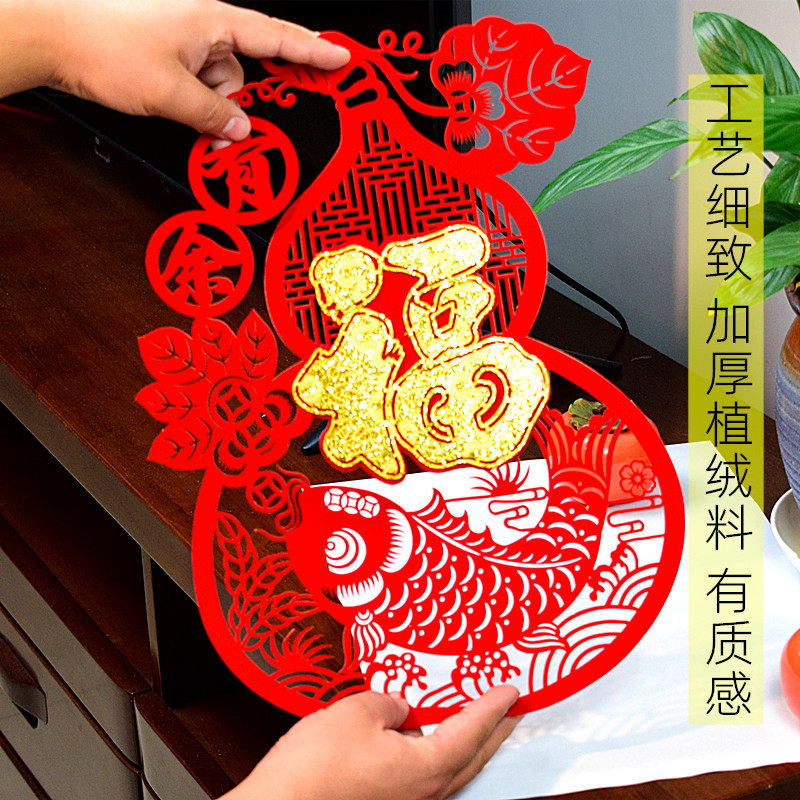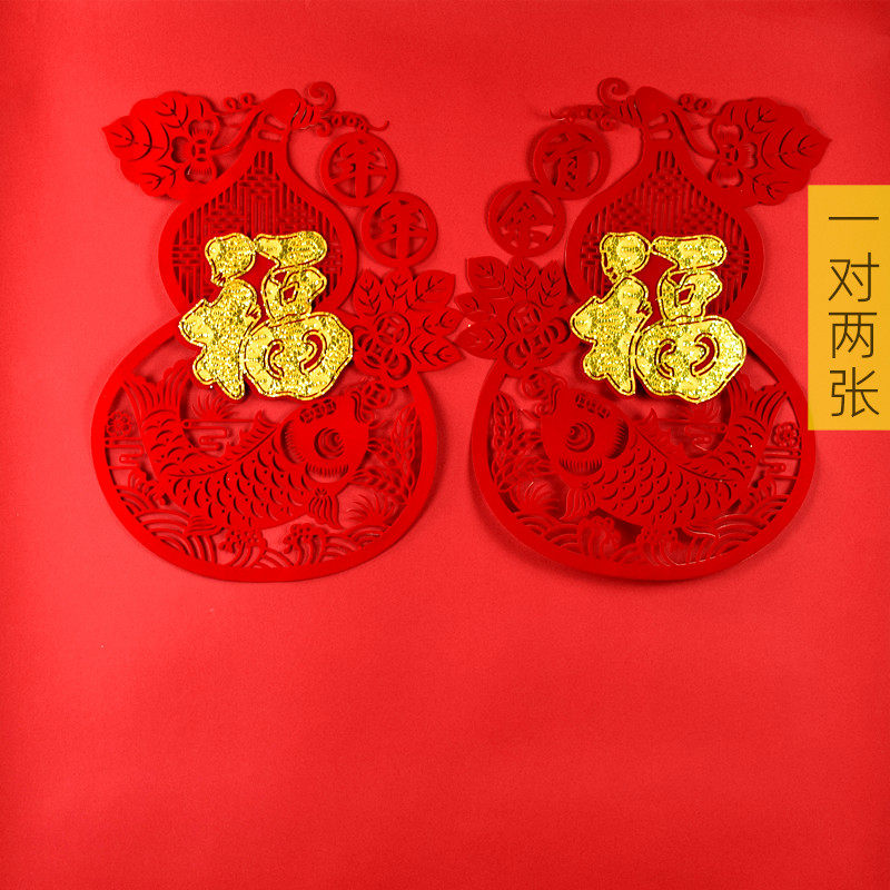 New Year, New Year, Spring Festival, festive decoration, decoration supplies, Fu word, gourd, paper-cut window, door, wall sticker, glass sticker