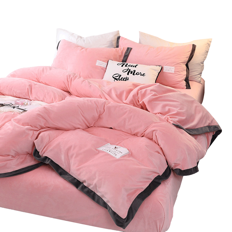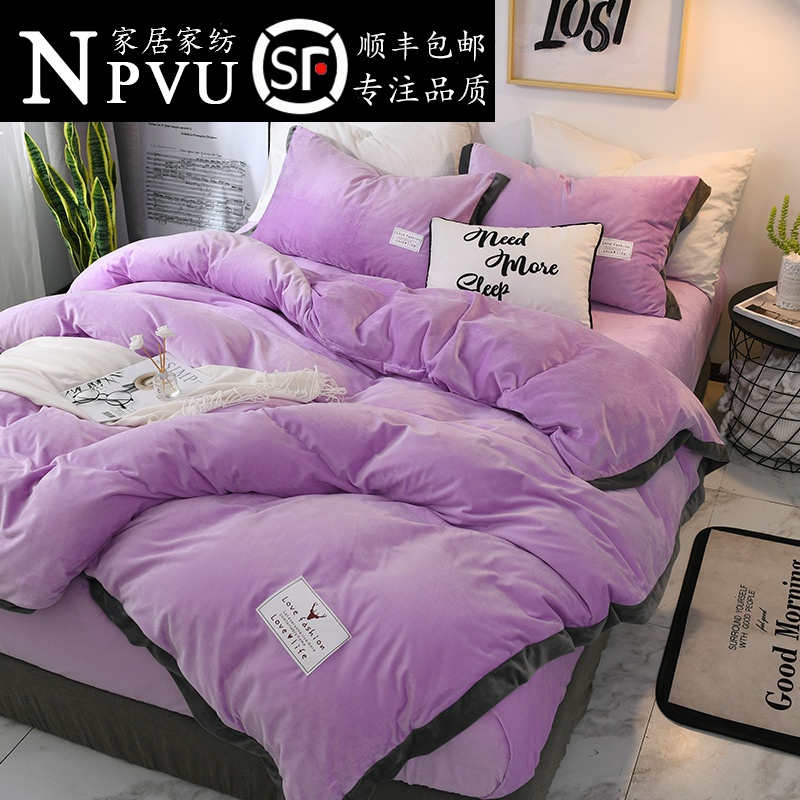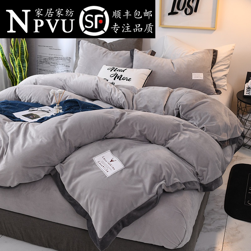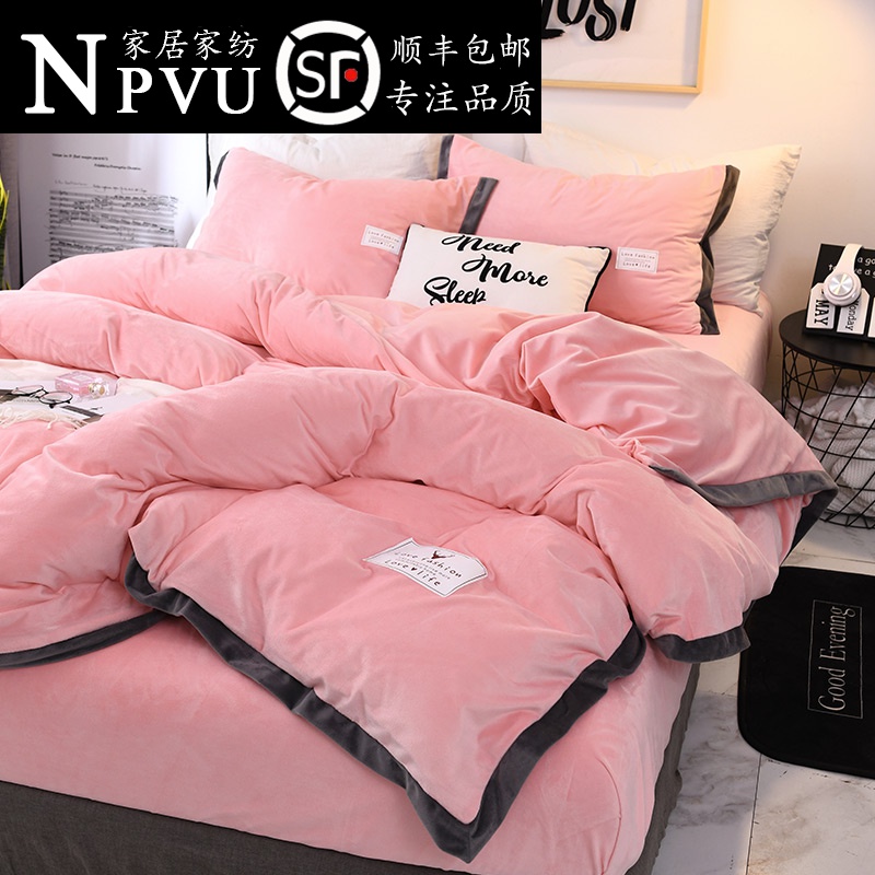 NPVle Fallélan Suede Beds Bedding Four Pieces of Thickened Plush Quilt Cover Coral Suede Winter Bifacial Short Suede