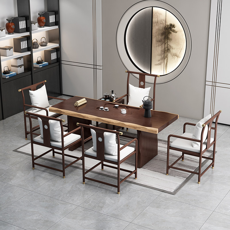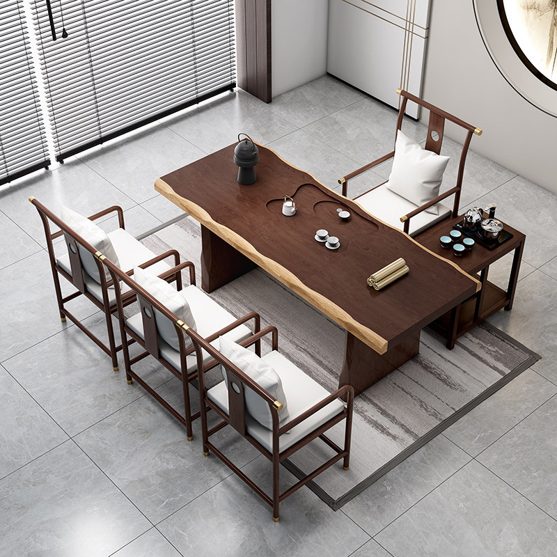New Chinese solid wood tea table and chair combination Zen tea table Kung Fu tea table Office reception room negotiation reception table and chair