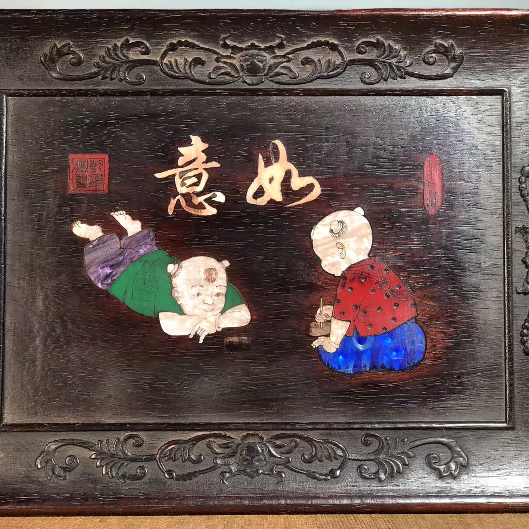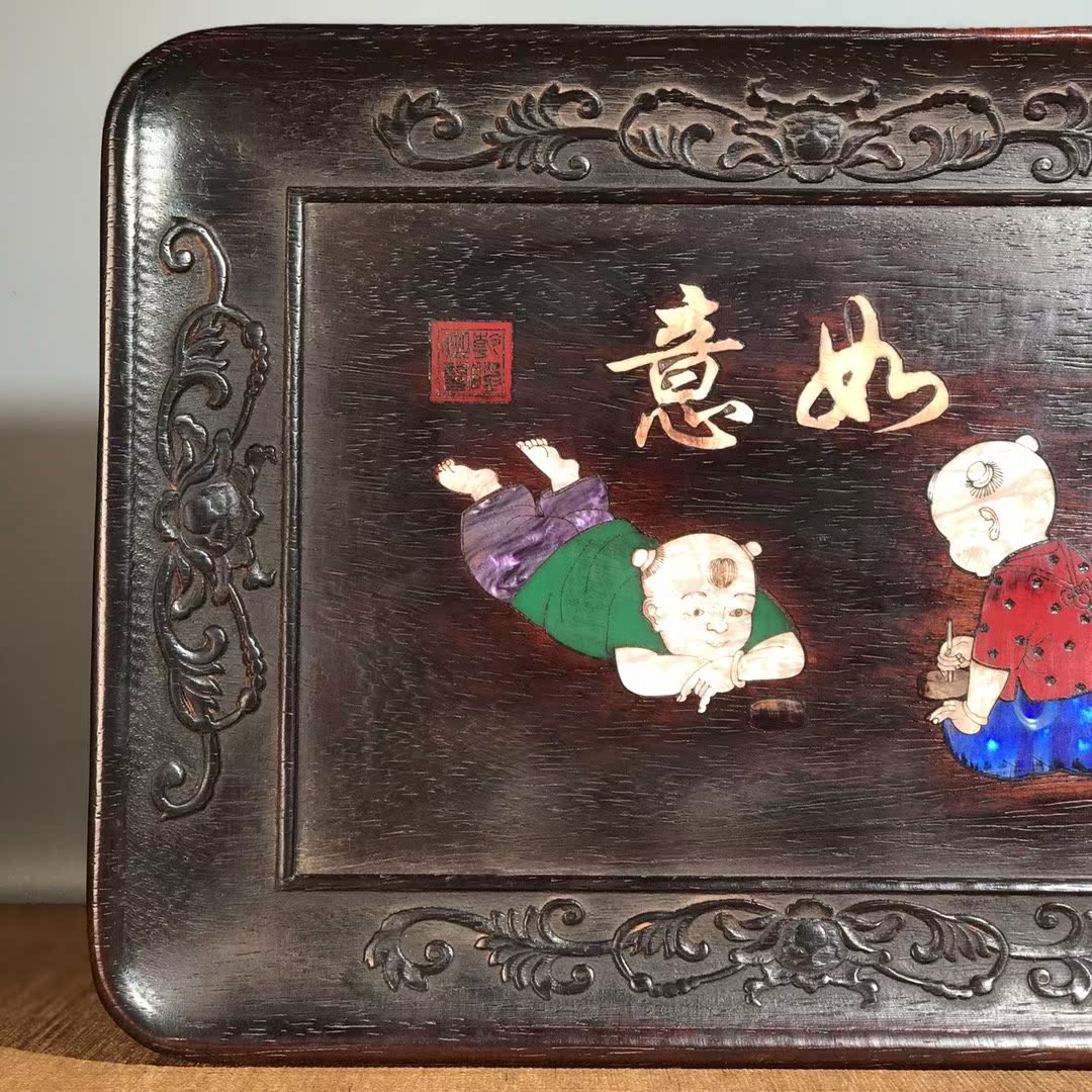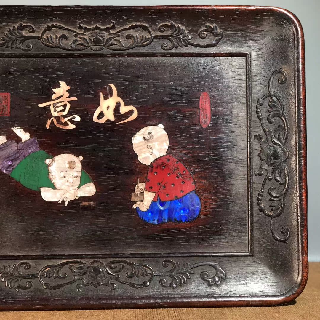 Antique Miscellaneous Collection Wood Collection Treasure Blood Sandalwood Inlaid Shell Ruyi Plate Tea Tray Ornaments