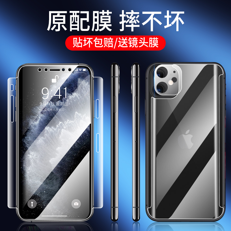 Apply Apple 11 steel chemical film iphone11pro mobile phone full screen cover anti-fall blue light 11promax full bag edge front and back water coagulated soft film eleven protection camera lens appliation por