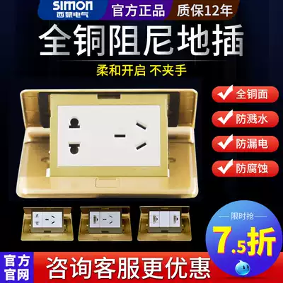 Simon D6 series Copper ground socket with damping power socket panel five-hole computer ground plug
