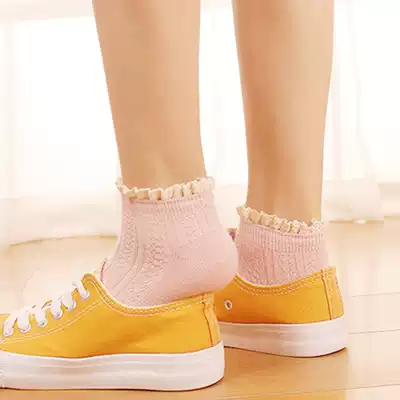 Lace section color edge section lace socks Sen women's socks stitching powder thread section mesh section letter section letter strip light elegant style solid color strip PET department jingle cat hellokt