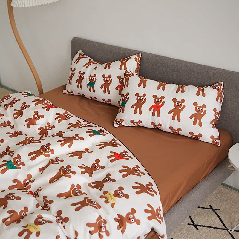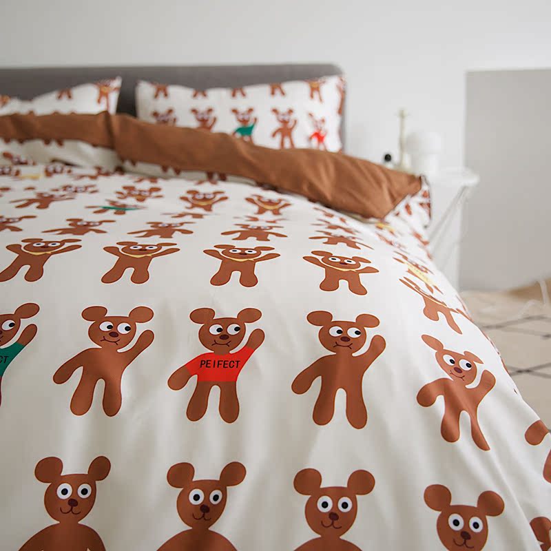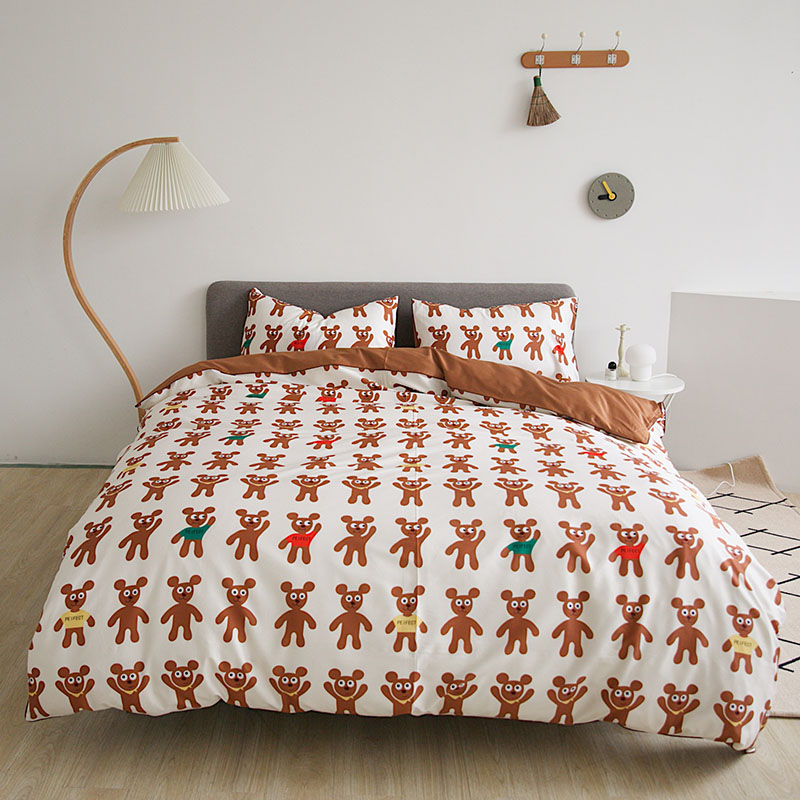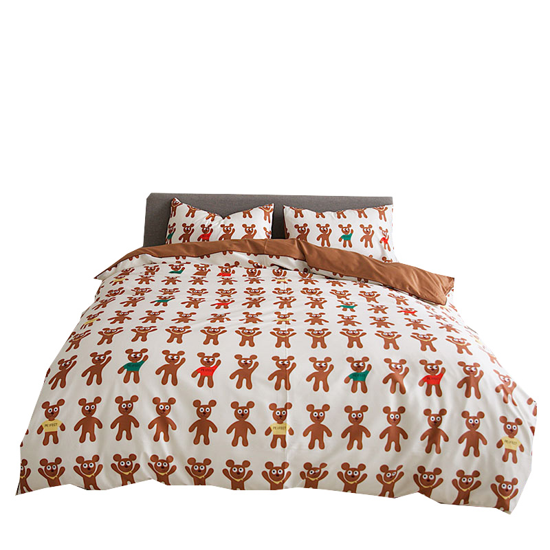 (Rich Mountain Strawberry) Cartoon Cute building with small Bear 60 Gon Satin Long Suede Cotton Four Pieces Full Cotton Children's Bed